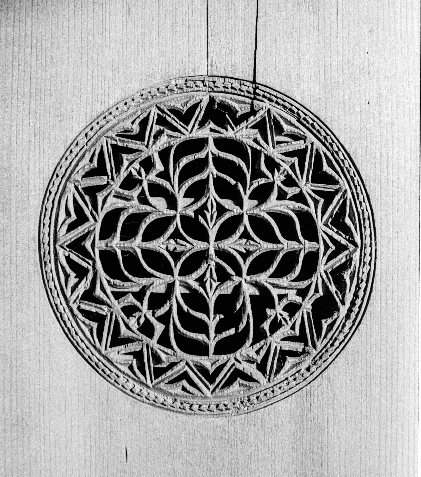 This rosette was obviously cut by a skilled hand, still it did not bother to avoid knife marks all around the edge (the kind of marks you leave inside, if at all, since that is the side where you normally cut your rosette).